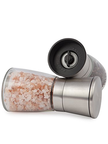 - ✮ SUPERIOR BUILD QUALITY - These are not your average dual salt & pepper mill set, once you hold them in your hand you will soon see why. With toughened glass, top-of-the-line ceramic grinder and highest grade brushed stainless steel they are built to last without compromising style. Don't take our word for it though, have a glance through our reviews to see what others say.