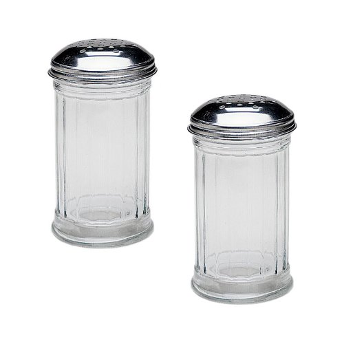 2 Pack of 12 oz. Steel-Topped Cheese/Spice Shaker for Parmesan Cheese, Red Pepper Flakes and a lot more. Top quality manufactured by Libbey. Comes bubble wrapped.