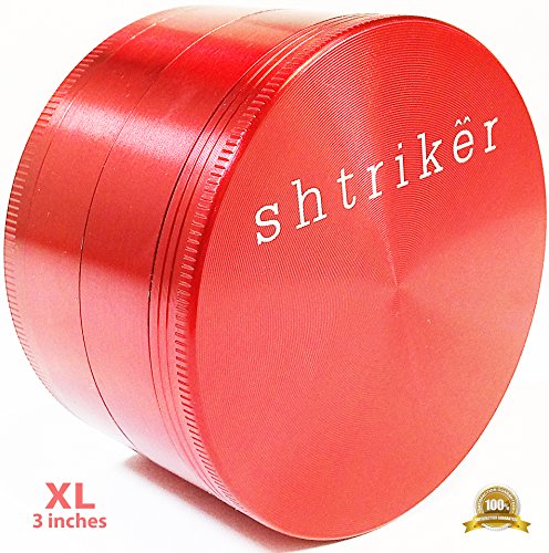 Shtriker® Grinder Extra Large 3.0 Inch 4 Piece. Tobacco Grinder / Spice Grinder / Herb Grinder / Weed Grinder (Red)