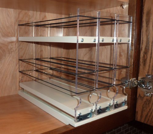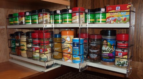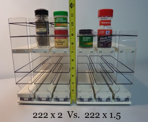 The 222 x one.five x 11 Spice Rack is a shortened 2 Tier spice rack to give you substantial capability storage in a slightly shorter space. Mama bear sized, this unit will retailer eighteen full-sized spice containers below and up to 18 half-sized (2\" tall containers) above. The front and rear clear panels are not as tall, to match in shorter locations, to hold your upper cabinet shelf reduce. You will need to have a room of 9.5\" from the cabinet base to your up coming cabinet shelf to match this unit. Fits a compact area with complete access to the back row of your cabinet and it accommodates regular and half-sized sized spice containers (i.e. Penzeys, McCormicks, Spice Islands, etc.), no need to have to re-bundle. The drawer unit arrives pre-assembled with the required mounting screws. Vertical Spice items are the exclusive and greatest kitchen cabinet storage answer. Flexible bands and clear panels offer simple and comprehensive accessibility to your stored flavors. Steel ball-bearing slides give smooth, sturdy and long lifestyle to the drawers. The Durable Coated finish is oven baked paint for effortless cleansing and long daily life. Units can be placed in new, old and renovated cabinets and just a Phillips screwdriver is essential for extremely simple mounting. We have a total line of a lot of unit sizes and configurations for you to mix and match to meet your customized organizational demands.