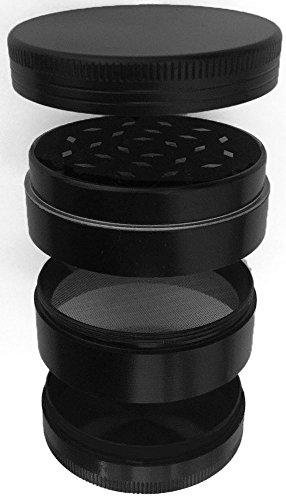 Spice Up Your Life Herb Grinder/Tobacco Grinder/Spice Grinder - Four Piece Grinder with Pollen Catcher - Premium Grade Aluminium 2 Inches Wide (Black)