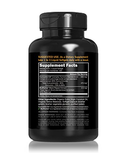 Sports Research Turmeric Curcumin C3 Complex 500 Mg with 95% Curcuminoids,Bioperine and Organic Virgin Coconut Oil. 120 Capsules 4.7 out of 5 based on 882 ratings. 882 user reviews