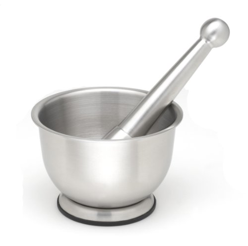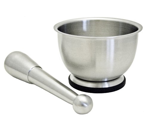 Mortar and Pestles StainlessLUX 75551 Large Stainless Steel Mortar and Pestle Set/Spice Grinder/Molcajete, 18-Ounce/2.25-Cup, Brushed Finish Generate the greatest flavors and aromas for your meals and sauce with this practical stainless steel mortar and pestle set. Produced of heavy gauge tough stainless steel, maintain pounding and grinding and it does not worn out easily. Smooth and non-porous surface leaves no residue nor stain. Round knob on top of pestle for cozy grip and total manage. Properly balance and it can even stand on its personal. Bowl shaped to permit even grinding and maintain ingredients in. Non-Skid base for stability. Wonderful for crushing, grinding and mixing herbs and spices. Even better for creating your favourite fresh guacamole. So very good-looking that you can even serve out straight from the mortar bowl, so convenient. A very good mortar and pestle enables you to sustain the integrity of each ingredient and brings out the essence of the spices. Regardless of whether you are just crushing a couple of peppercorns and cloves, generating seasoning rubs, or getting ready elements for guacamole and pesto, you would be pleased with this top quality stainless steel mortar and pestle set. This stainless steel mortar and pestle set does not break apart, nor chip and crack like plastic, porcelain, glass and stoneware may. Non-porous surface. Effortless-to-clean and hygienic as stainless steel naturally resists bacteria adherence and development. No residual taste and smell from preceding crushing and grinding. No lead, no BPA and no mercury. A excellent decision for people desire a risk-free kitchenware that lasts. A great gift for birthday and holidays. Each and every mortar and pestle set comes in StainlessLUX's signature reusable black non-woven draw-string pouch to make certain authenticity and for safety in the course of shipment and in storage. A single yr restricted warranty. StainlessLUX is a trademark of StainlessLUX, Inc. $25.00 http://ecx.images-amazon.com/images/I/31H7RnVKzJL._SL160_.jpg