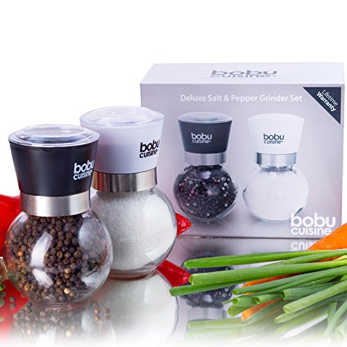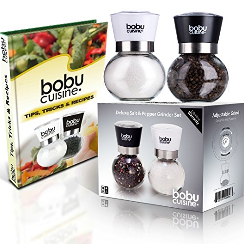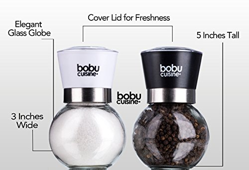 Deliver ELEGANCE, CLASS AND LOADS OF Fun BACK TO THE KITCHEN Join the bobu Cuisine Family with your new exquisite salt and pepper grinder set GET Prepared FOR THEM TO STEAL THE SPOTLIGHT With its striking black and white shade scheme and eloquent globe design, your new peeler set are confident to be one particular of the highlights of your kitchen. They search terrific appropriate in the middle of a occupied dinner table. They are the perfect dimension and easy to use. Dimensions are 8x8x12.5cm, they hold a big sum of salt and pepper with no need to have for continual fill ups. Developed with an adjustable ceramic grinding mechanism that lets you manually pick the coarseness of the seasoning, from fine to coarse. They leave no mess on you counter. The material is produced of a glass bottle, black/white ABS, copper nut, stainless steel 201 ring, Ceramic Mechanism. A TERRIFIC Gift Notion A bobu Cuisine salt and pepper grinder set makes for a terrific and economical gift. It truly is easy to purchase, effortless to use and sure to carry tons of smiles, along with class and exciting to someone\'s kitchen. Household, buddy or colleague, genuinely helps make a great gift for any person. Unique RECIPES Included We supply ideas, tricks and recipes so you can start obtaining innovative with your new grinder set -From salted caramel dip to focaccia bread, we stroll you by means of how to make the very best use out of your new grinders. Impress your family members and buddies with tasty creations Straightforward TO CLEAN: Basically unscrew the bottom and hand wash both the grinder mechanism and the glass sphere Limited supply - Never wait until we run out of stock If you are not happy, neither are we. We supply a Threat Cost-free MONEYBACK Guarantee on all our goods Get bobu Cuisine\'s Salt and Pepper Grinder Set today