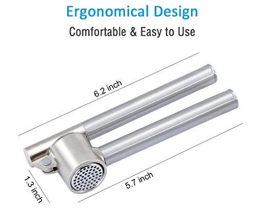 - PROFESSIONAL QUALITY; Stainless steel garlic press won't rust, weaken at the joints or break; Ergonomic design fits most hands and minces garlic and ginger with ease