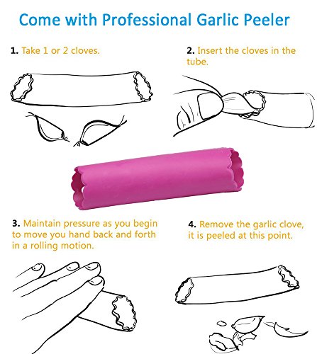 - LARGE CAPACITY: Holds up to 2 cloves of garlic and chops garlic perfectly; Silicone garlic peeler removes skins and protects your hands from garlic smell