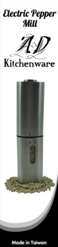 The AD Kitchenware Offers Top Quality and Stylish Design Electric Pepper Mill This Electric Pepper/Salt Grinder Is Very Efficient In Grinding Peppercorn, Rock Salt or Spices -This high quality luxury device is one of the signs of a great kitchen. -The cool triangle shape and comfortable button make it very easy operate and control with your index finger. -This stainless steel grinder is made to last for years, providing any discerning chef or cook with fresh and vibrant flavours in their food, both in the kitchen and on the table. AD Kitchenware Pepper Grinder Consists of Admirable Features: -The capability of containing up to maximum 2/3 cup peppercorn at a time. -The high quality ceramic grinding mechanism which effectively prevents the build up of any rust and corrosion. -The battery compartment and salt/pepper chamber are nicely separated and well protected. NO WORRY about battery leaking. -The grinder is fully adjustable to the coarseness that is desired. It even has an illuminated base that shines a light while you are seasoning. -The 6-batteries motor is efficient: grinding pepper faster and helping battery life last longer. BONUS ALERT! Get another device for FREE (Coupons were randomly adding in the packages) More Cool Bonuses will be added in the following email. Check it out after you make an order. NO-WORRY WITH ONE YEAR MONEY BACK GUARANTEE Get this luxury device with affordable price today! By Click the ADD to Cart button on top of this page!
