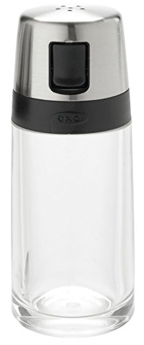 The OXO Good Grips Salt Shaker is a versatile addition to any kitchen. The hole pattern on top of the Shaker is perfect for adding a light seasoning to any dish, and the pour spout allows for easy dispensing of larger quantities while cooking your favorite recipe. The stainless steel accents and clear body gives the Shaker kitchen-to-table appeal – great for preparing and serving meals.