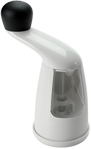 Freshly ground pepper on that? The answer is yes, with the OXO Good Grips Pepper Mill that covers all bases: A long turning arm with comfortable, nonslip handle makes it a snap to get the grinder started and the adjustable ceramic grinding mechanism offers maximum durability. A clear door opens wide for easy refilling (no peppercorns rolling around the counter) and a matching base keeps a trail of pepper from escaping