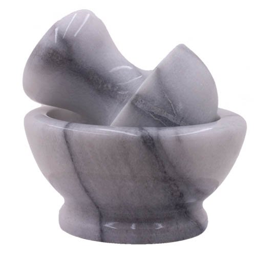 This oversized mortar and pestle is great for crushing or grinding large amounts of spices and herbs. The polished marble is impervious to flavour transfers, and has a textured surface on the interior of the mortar and the base of the pestle for better crushing and grinding. Versatile enough to be used as a serving dish. Unpolished interior for superior results. An updated version of a true classic. 8-Inch diameter