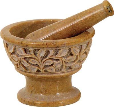 Aisev Naturals – Soapstone Carved Leaves Mortar & Pestle