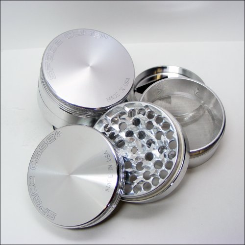 If you’re unfamiliar with the world of grinding, you’re in for a treat! Because grinding exposes the maximum surface area, it makes the material much more potent during use, allowing it to be utilized much more efficiently. The Titanium version offers some non-stick properties, and uses an anodizing process that changes the viscosity of the aluminum, increasing it’s strength by about 100% and making it dark in color. The original polished version should last a lifetime though. If you’re particularly hard on things or plan to live more than one lifetime go with the titanium. Otherwise it’s a matter of aesthetic preference. Specs: Large= 3 1/2″ diameter