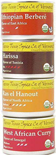A tour of African cuisines in a single bundle, Teeny Tiny Spice Co. of Vermont has bundled these flavorful spice bends to produce a fantastic gift for adventurous house cooks. ** Ras el Hanout brings the flavors of the ancient spice routes into your kitchen. This spice mix is a accurate meeting of East and West with a brilliant blend of floral and spice tones with just a hint of heat. We love to include it to slow cooked stews and legumes, rice or couscous. ** Harissa is the staple fiery condiment of Tunisia. A combination of sizzling peppers, spices and herbs, it is used as a rub, a basic spice to add to any dish, and as a spread like mustard. We have created a dry Harissa, creating it handy to generate a little or a lot as you need it, and enabling it to be employed as either a dry ingredient or made into a paste with a bit of oil or hot water. ** Ethiopian Berberé is a scorching and flavorful mix of far more than a dozen elements. It can be used as a dry or moist rub on roasted meats or tofu. Add it to stews and sauces for a daring and total taste profile. Subtle flavored dishes this kind of as beans, lentils and potatoes will be transformed into a real delight. This is a hot spice which can be used judiciously or with recklessness dependent on your mood. ** Our West African Curry mix is rich with mild heat. It consists of many ingredients that you would expect in a curry with the addition of a number of spices more common of African cuisine such as Cubeb and Grains of Paradise. The blend is based mostly on curries used in Senegal for preparing classic fish dishes. As with all of our curry blends it is fantastic as a curry with any protein of vegetable, utilized as a spice rub or as a common seasoning to give a balanced new flavor to your kitchen.