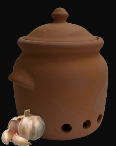 - Store your garlic or onions in this beautiful Large Garlic Keeper. This kitchen garlic Keeper has holes in the clay to provide air circulation and keep your garlic or onions fresher longer. The top cover has an attractive onion bulb for easy lifting. The garlic Keeper stands 8-inch tall and 5-1/2-inch diameter