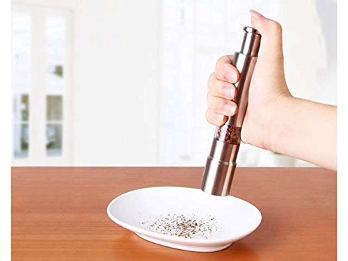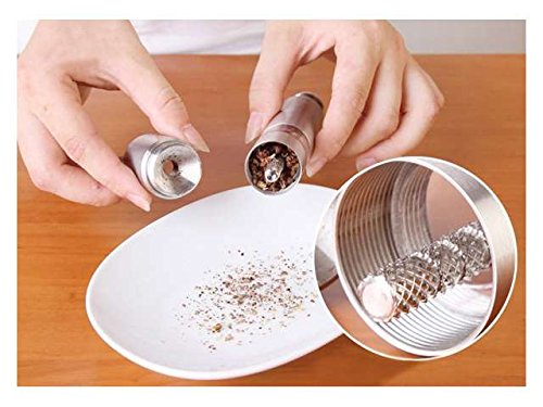 Salt and Pepper Tools Tmvel Salt and Pepper Stainless Steel Mill Grinder Set Sleek Design Set of 2. This elegant Reflex salt/pepper grinder is a should-have for any table. This revolutionary mill functions Grind\'s signature push-button style for effortless pump and grind dispensing. Superior stainless steel physique with a clear window for viewing contents. Only Grind Gourmet gives the unique. We make our mills with high high quality stainless steel material and the only acrylic part on our mill is the window. $19.99 http://ecx.images-amazon.com/images/I/41EbdCQX8dL._SL160_.jpg