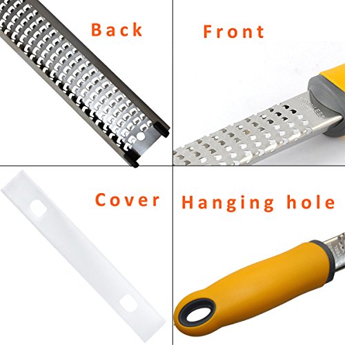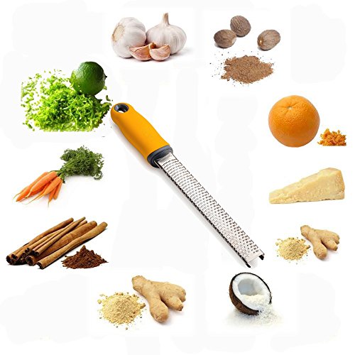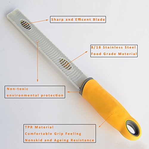 Spice Graters TT-life Classic Lemon Zester / Cheese Grater Ultra Sharp Stainless Steel + Free Bonus Peeler for Vegetable and Fruit This TT-lifestyle stainless steel spice zester is the simplest way to zest all of your citrus for your favored food and drink recipes. This easy, hand-held citrus zest attributes an ergonomic santoprene manage for cozy grip, and a hole for hanging. The razor-sharp blade can make grating straightforward and it comes with a thick, plastic cover for risk-free storing and managing. Specs: Size: 32.5x2.5cm Material: Stainless steel 304# Blade + TPR Grip + PP Cover Colour:Yellow+Stainless Steel Bodyweight:82g $9.97 http://ecx.images-amazon.com/images/I/51UBc4V%2BRJL._SL160_.jpg