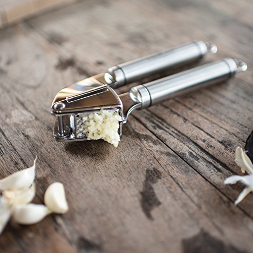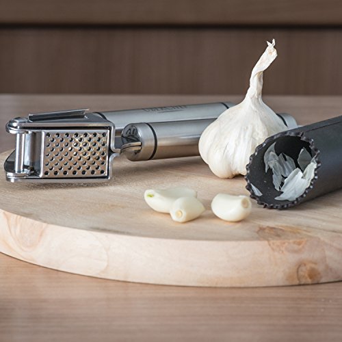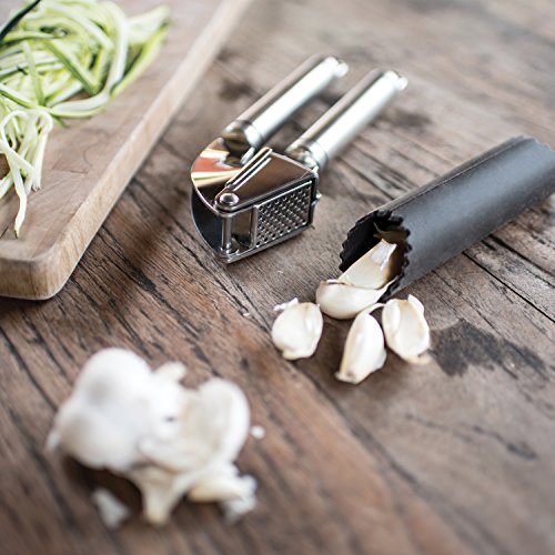 - ★ VERSATILE & MULTIFUNCTIONAL: With a beautiful chef-inspired, design, this kitchen tool set will be your favorite addition to your cooking arsenal in years. With its brilliant finish and the always-useful peeler at the ready, you're sure to impress. Better still, it doesn't just end at garlic. Consider crushing ginger in an upcoming dish for a special, unique taste.