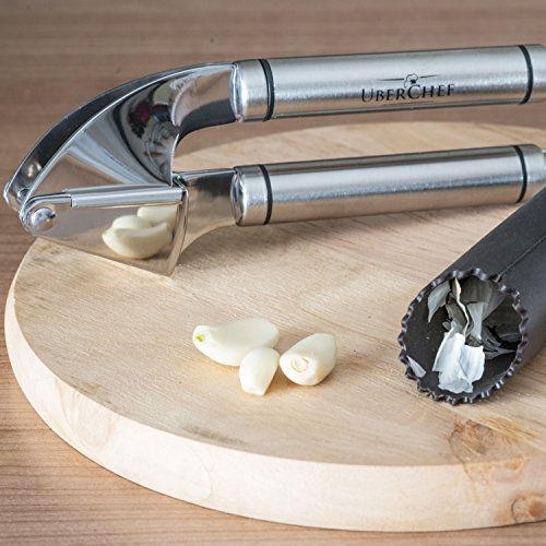 - ★ 5 OUT OF 5 STAR RATING: Professional chefs, backyard grill kings, amateur cooks, and all of our loyal, happy customers agree that the Top Rated UberChef Premium Stainless Steel Garlic Press & Peeler Set is the BEST tool for creating unique, healthy, and beautiful meals in style. Includes Limited Time Bonus Recipe E-Book!