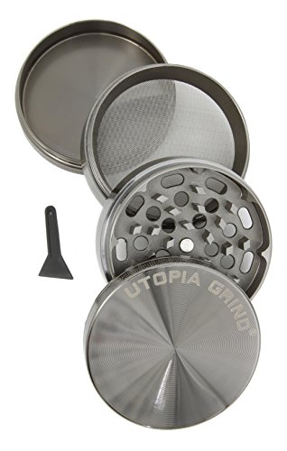 The Utopia Grind two.5\" four-Piece Herb Grinder features robust, durable zinc alloy building that was developed to last. When you have the grinder in your hand, you will truly feel the quality of resources right away. The lid is held on by a neodynium magnet, so it will not fall off in your pocket. Underneath the lid, housed are 48 super sharp diamond-shaped teeth that will constantly and effortlessly cut the herb to the best consistency and dimension every time. The nylon ring between the leading two pieces make grinding your herbs an effortless and whisper-quiet encounter. The pollen display will sift out the desirable pollen/kief throughout every single grind. The pollen scraper will make collecting the components easy and easy. We respect your privacy, so the grinder is shipped in a plain package and contains a hassle-free carrying bag to defend your grinder from scratches. Our lifetime assure means what it says! Return the grinder any time for an exchange or refund, no hassles and no questions asked. We want you to be satisfied with our product. This will be the last herb grinder you purchase...until you acquire 1 for a buddy!