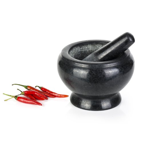 Mortar and Pestles VonShef Solid Granite Pestle and Mortar 5.5" Diameter Beautiful and Tough The Pestle and Mortar is the best accompaniment for any kitchen. This iconic piece, manufactured from reliable granite, appears great and will easily impress close friends and relatives. The toughness of granite is due to the interlocking crystal structure as it cools from melt, producing it amongst the hardest of rocks. This can make our pestle and mortar extremely durable and makes it the greatest way to grind each challenging and soft ingredients. Create Delicious Dishes The time for purchasing pre-manufactured and pre-packaged pastes, pestos and dressings is in excess of! The pestle and mortar allows you to grind the freshest of herbs to create the most fragrant of pestos and the toughest of seeds and spices to create the most aromatic of curry pastes. Producing your dishes from scratch will consider them to the up coming level, so impress all your close friends and family members! The Dimensions Height: four\", Outer Diameter: five.five\", Grinding Area: three.75\" $17.95 http://ecx.images-amazon.com/images/I/41WQ%2BkBjaCL._SL160_.jpg