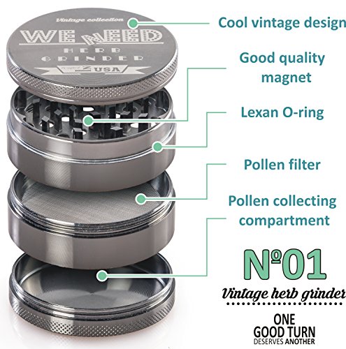 Your grinder is Previous-FASHIONED , Utilised and Broken? You want A NEW GRINDER IN YOUR Daily life? If you are exhausted to Attempt to grind your favourite herbs with some over-priced, low high quality grinders then our item is your solution! OUR Goal is not only your complete satisfaction and to deliver a very good good quality herb grinder! We want to share with you a excellent solution, a new fashionable appear, a new energy... The WEnEED HERB GRINDER is manufactured from a very good high quality alloy that will insure a best crush for a extended time period of time. WHAT ARE THE Benefits AND Attributes ? - Tough four metal elements grinder - A great quality magnetic cap that helps make it simpler to flip and grind with out problems - Sturdy an sharp teeth - Pollen catcher with fine mesh pollen filter - Lexan o-ring for a quiet and smooth grinding - Light and compact -2,5\" diameter X one,75\" height. Extremely Simple TO USE! Take away the cap - location the herb onto the teeth - close the cap - give it about 5 turns in every single instructions - unscrew the primary compartment and appreciate. Soon after a couple of uses you may possibly open the bottom compartment to gather the rest fine pollen. Verify out the product promotions area for your weekly delivers! GET ACCESSORIZED with a high quality grinder , click \"add to cart\" now!