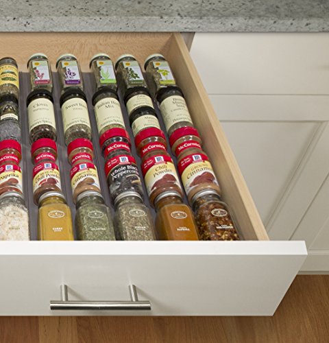 It truly is effortless to construct an organized spice drawer with SpiceLiner® from YouCopia. The SpiceLiner® 6-pack holds 24 total-dimension or 48 half-size spice bottles neatly in your kitchen drawer. The 18\" length fits common kitchen drawers or can be trimmed to fit. Each and every individual liner measures 2.5\" wide to hold round or square bottles in spot. Fits massive spice bottles that won\'t match in other trays. There is no set up or adhesive essential. Just lay the SpiceLiner® flat in your drawer and place spice bottles on top, with labels facing up, for easy viewing and accessibility. Soft foam prevents bottles from moving when the drawer is opened and closed. Effortless to get rid of for cleansing with a damp towel. SpiceLiner® is also wonderful for organizing child foods jars, vitamins and medicines. YouCopia creates modern property organization items to help you simplify and enjoy existence.